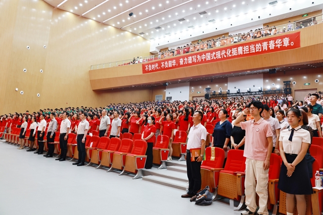 6月19日,我校2025届学生毕业典礼在大学生活动中心多功能厅隆重举行。校党委书记杨浩出席典礼,并为获得国家奖学金的毕业生颁发荣誉证书。校长姚荣斌出席典礼并讲话。校领导刘长虹、丁红星、房玥婷、李传江出席典礼。相关部门、各学院负责人,毕业班班主任、辅导员、教师代表及2025届全体毕业生参加典礼。